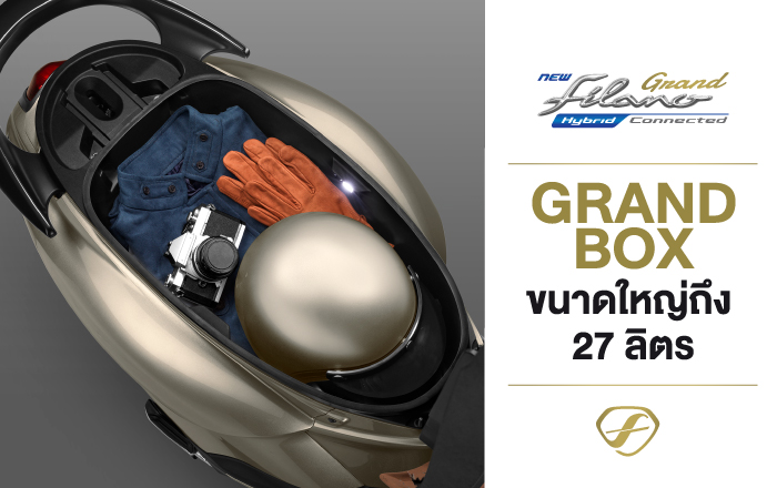 ใหม่! ยามาฮ่า แกรนด์ ฟีลาโน่ ไฮบริด คอนเน็คเต็ด NEW YAMAHA GRAND FILANO HYBRID CONNECTED ความพรีเมียมใหม่…คอนเน็คให้ชีวิตมีคลาส ออโตเมติกแฟชั่นพรีเมียม สไตล์โมเดิร์นคลาสสิก ดีไซน์ใหม่สง่างามเหนือกาลเวลา สัมผัสได้ถึงความเหนือกว่าด้วยความสมาร์ทจาก Y-Connect และฟีเจอร์ใหม่ที่ทำให้ชีวิตโมเดิร์นไปอีกขั้น พร้อมสมรรถนะการขับขี่ที่ดีเยี่ยมจากเครื่องยนต์ Blue Core Hybrid 125cc พร้อมเอกลักษณ์ใหม่ F-icon กับสีสันใหม่ที่บ่งบอกถึงรสนิยมในแบบคุณ ตอบสนองทุกไลฟ์สไตล์ได้อย่างภาคภูมิใจ ไปกับชีวิตที่มีคลาส สมาร์ทสไตล์พรีเมียม และคุ้มค่ากว่าด้วยการรับประกันนานกว่าถึง 5 ปี หรือ 50,000 กิโลเมตร*