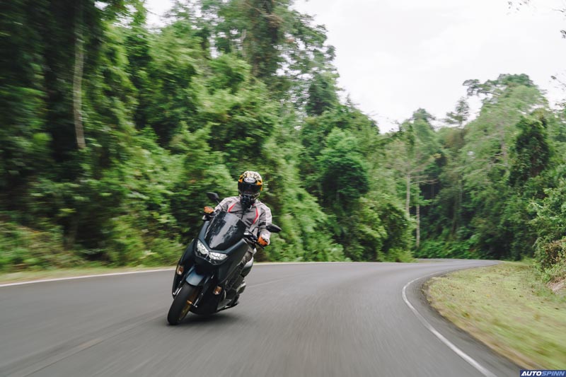 นอกจากนี้ การทรงตัวของรถถือว่าออกแบบมาได้ดี ด้วยจุดศูนย์ถ่วงที่ต่ำมากๆ ทำให้เราสามารถทำความเร็วในโค้งได้อย่างต่อเนื่อง ยิ่งใครที่ชอบเล่นโค้งบ่อยๆ บอกเลยว่าถ้าขี่ Yamaha NMAX คันนี้ ขึ้น-ลงเขา สนุกอย่างแน่นอนครับ